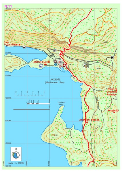 Lycia road goes from Çukurbağ towards south and descending from a terrace overlooking Kaş district in a perpendicular way and passes from Kaş settlement. Kaş district is a center in which needs such as public transportation, market, bank, accommodation etc. can be met. For the ones who will go on towards Limanağzı direction, they should move on with keeping in mind that there is no other settlement until Boğazcık – Kılınçlı settlement for obtaining the needed resources.